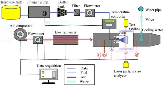 - Zheng, K.; Gan, Z.; Wang, X.; Han, X.; Zheng, T.; Wang, J. Experimental Study on Spray Characteristics of Aviation Kerosene from a Pressure-Swirl Nozzle in High-Speed Airflow with Elevated Temperatures. Phys. Fluids 2024, 36, 023332. [Google Scholar] [CrossRef]
