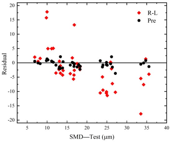 - The results of the Spearman analysis indicate that the model accurately reflects the qualitative impacts and correlations of variables on atomization droplet size. Among the variables, the most significant negative impact on droplet size is observed for air pressure and the air pressure drop ratio, while the FAR shows a positive correlation with droplet size.