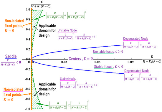 However, with this type of focus in HBM dynamics, HMB will approach or leave the focus with dissipative oscillation, which is not acceptable for design. Therefore, focus is not considered, and the parametric domain leading to focus, defined by Equation (27), should be avoided.