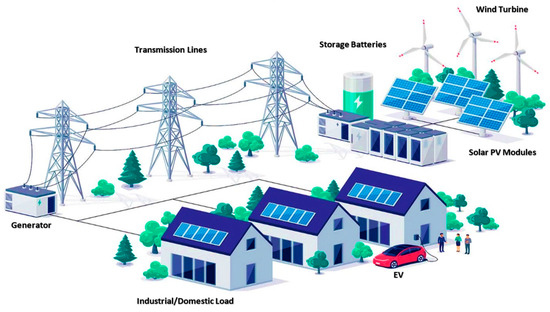 With the increasing electricity demand, the energy crisis has become one of the most important challenges/issues faced today around the world. Dispersed generation, which is also known as distributed generation (DG), has become a major economical and common source of energy for electricity generation because it helps to overcome the increasing load demand. DG represents a modern approach in power distribution systems to handle the increasing demand for electric energy. It refers to small-scale power generation units located near the load, such as photovoltaics (PVs), solar panels, wind turbines, synchronous and induction generators, micro-turbines, and fuel cells [1,2]. Smart grids are also natural expansions of decentralized generation. DG is an essential component of smart grids, enables them to generate decentralized power on-site or near the load, helps to reduce peak loads, and improves the management systems of central power grids [3].
