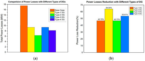 By substituting Pi and Qi from Equations (13) and (14) into Equation (15), we obtain a modified power loss equation with respect to its active power and reactive power according to the types of DGs.