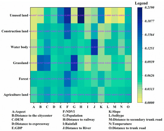 Contribution of the 15 drivers to the land use types.