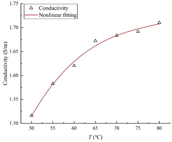 The electrical conductivity of formation water at different temperature points was measured, and the experimental result is shown in Figure 6.