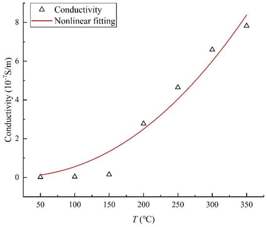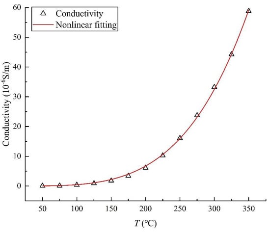The conductivity of sandstone was measured as a function of temperature, and the experimental result is shown in Figure 8.