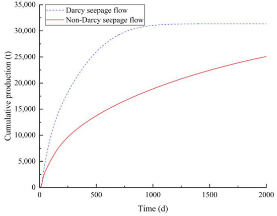 Comparison of heavy oil cumulative production of Darcy and non-Darcy flow.