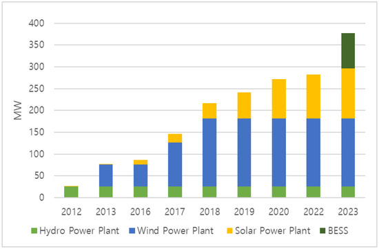 Currently, there are three wind, eight hydroelectric, nine solar PV, and two battery energy storage systems operating in the integrated power system (Figure 4).