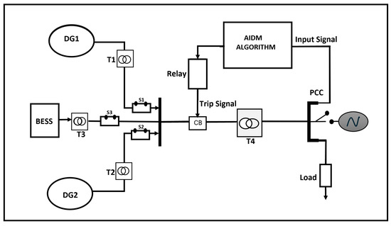 - During the design and validation of the AIDM, faults/disturbances are injected into the MG network, resulting in the disconnection of the MG from the utility grid at the PCC.