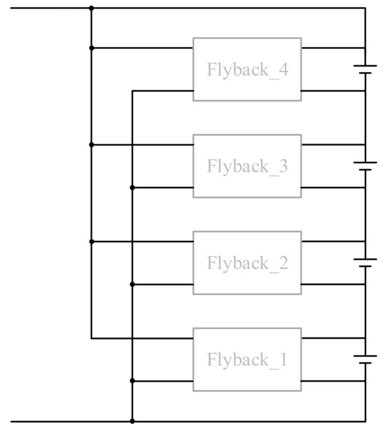 When the battery is balanced in case 1, as shown in Figure 9, Flyback_1, Flyback_2, Flyback_3, and Flyback_4 are turned off, and the associated equation is shown in (17):
