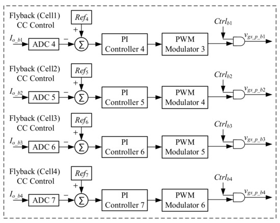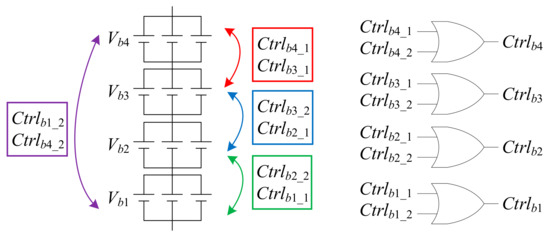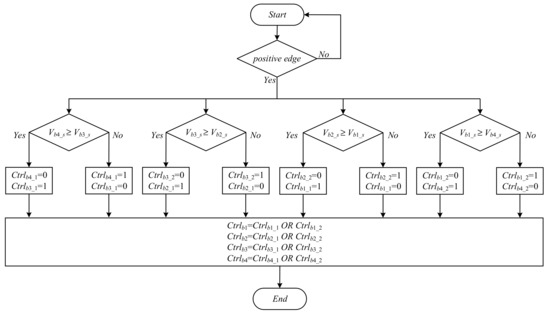 If the battery voltage is Vb4 > Vb3 > Vb2 > Vb1, using the proposed chain-loop comparison method, we can determine that Vb4 > Vb3, implying that Flyback_3 is on and Flyback_4 is off; Vb3 > Vb2, implying that Flyback_2 is on and Flyback_3 is off; Vb2 > Vb1, implying that Flyback_1 is on and Flyback_2 is off; and Vb4 > Vb1, implying that flyback_1 is on and Flyback_4 is off.