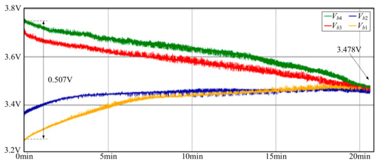 When the battery is balanced in case 1, as shown in Figure 12, Flyback_1, Flyback_2, Flyback_3, and Flyback_4 are turned off, and the associated equation is (21):