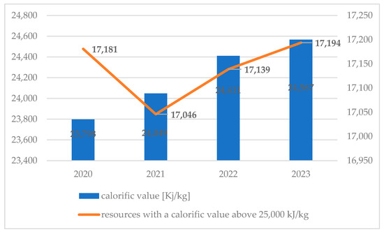 At this point, it should be added that the benchmark values for the qualitative parameters of thermal coal are most often defined on the basis of price indices such as: CIF ARA, FOB Newcastle, and FOB Richards Bay [93,94]. They take into account a calorific value of 25,000 kJ/kg, a sulfur content of less than 1%, and an ash content between 11 and 16% [95]. The higher the calorific value and lower the sulfur and ash content, the better the quality of hard coal.