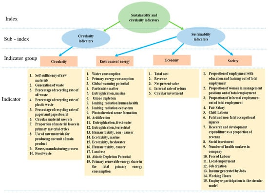 However, selecting the “best” alternative CBM for a company to improve its circularity and also its sustainability is challenging because circularity and sustainability are measured by using various indicators, including environmental, economic, social, recycling, reuse and many others. For example, Azevedo et al. (2017) suggested an index to evaluate manufacturing companies’ sustainability and circularity, which is composed of four environmental, three economic, seven social, and four circularity indicators [8]. This index is versatile and straight-forward, enabling the assessment of sustainability and circularity practices in manufacturing companies. However, this index is used for the individual company and cannot be used for the whole supply chain. Pollard et al. (2022) developed circularity indicators to evaluate the CE performance of electrical and electronic manufacturers’ products [9]. These circularity indicators were divided into 25 environmental, nine social, and six economic indicators. This study also considered the relationship between indicators and the life cycle product stage. De Pascale et al. (2021) provided a complete overview of CE indicators, considering 61 indicators in total: 14 indicators at the macro level, 15 indicators at the meso level, and 22 indicators at the micro level [10]. In addition, circularity indicators were also published by the European Commission (EC) [11] and the Ellen MacArthur Foundation [12].