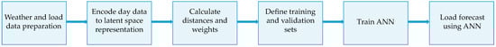 Authors hypothesize that the proposed solution will effectively learn hidden features from historical data, enhance the selection of training datasets by comparing encoded inputs rather than raw inputs, and ultimately achieve lower forecasting errors than the STLF tool in scenarios involving unexpected deviations from load profiles. The hypothesis was tested using real-life data from a Serbian power system. Test examples were selected from days in the past year during which the DSMM-STLF tool produced high forecasting errors. Holidays and other predetermined special days were excluded from the experiment. The solution proposed in this paper is an improvement of the DSMM-STLF tool and methodologies presented in [15,16,17]. The process structure and flow of the proposed solution are illustrated in Figure 1.