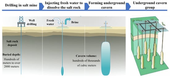 - Li, J.; Tang, Y.; Shi, X.; Wenjie, X.; Chunhe, Y. Modeling the construction of energy storage salt caverns in bedded salt. Appl. Energy 2019, 255, 113866. [Google Scholar] [CrossRef]
