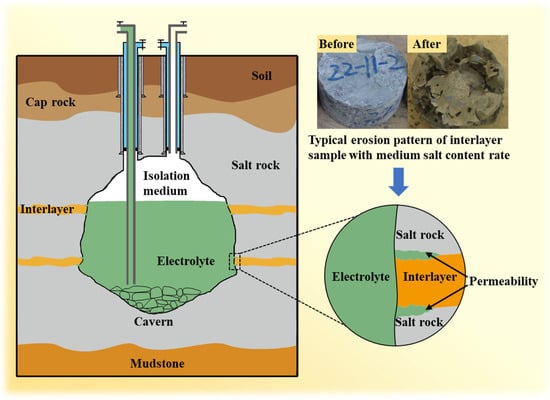 - Shi, X.; Liu, W.; Chen, J.; Jiang, D.; Wu, F.; Zhang, J.; Jinyang, F. Softening model for failure analysis of insoluble interlayers during salt cavern leaching for natural gas storage. Acta Geotech. 2018, 13, 801–816. [Google Scholar] [CrossRef]