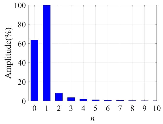 As shown in (16), the current reference of the y-axis is mainly composed of the DC component, the fundamental component, and the even harmonic component. The amplitude of each component is illustrated in Figure 4. From Figure 4 and (16), it can be observed that the amplitude of the DC component and the fundamental frequency component remain constant, while the amplitude of the even harmonic component decreases significantly as n increases. For simplicity of calculation and to avoid significant errors, n = 2 is selected. Subsequently, the current reference for the y-axis during the upper IGBT OSF of phase F can be determined as