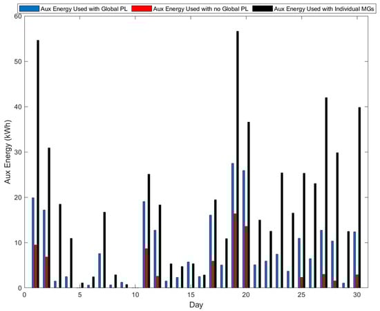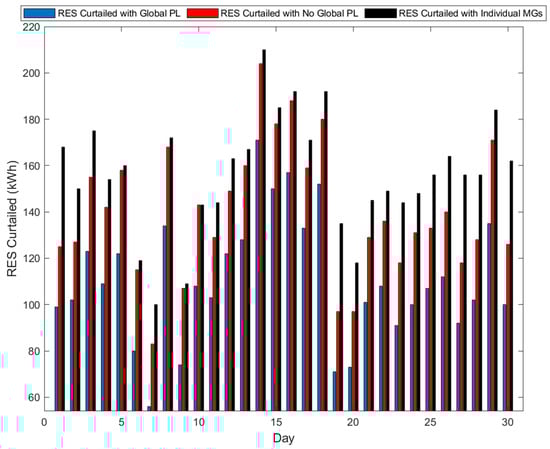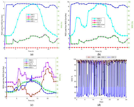 Considering the practicality of the overall existing model, each microgrid consists of PV-based RES and load profiles, covering both daily and monthly cycles. Each microgrid can operate individually to meet the local load demand, regardless of the power balance in the neighbouring microgrids. When the microgrids are not interconnected, if one microgrid has a shortage of power and another microgrid has a surplus of power, the microgrid with a shortage will be supplemented with power from the gas-powered auxiliary unit, and the microgrid with a surplus power needs to be curtailed at the full charge of the BESS because the surplus power from the PV-based RES cannot be stored.