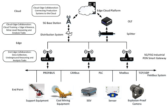 Equipment at a coal mining face generates a large amount of data. Uploading all the data to the cloud for processing can, firstly, put pressure on the transmission links and the coal mine data center (cloud), and secondly, it cannot meet the requirements of latency-sensitive scenarios. To reduce latency and alleviate the pressure on the cloud, edge computing nodes can handle lightweight data storage and computation within a certain range. Meanwhile, the cloud performs business analysis and mining, algorithm model training, and optimization. The generated algorithm models are pushed to the edge, forming a data learning and application closed loop.