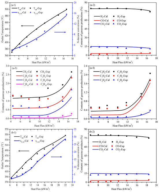 - By comparing the experimental values of the main product content, outlet temperature, conversion rate, and heat sink with the corresponding simulated values, the results show that the proposed model is reliable for analyzing the RCSR reaction process and heat absorption capacity of regenerative cooling.