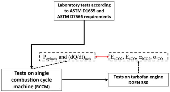 It should be emphasized that the subjects of research usually included mixtures of Jet A-1 fuel with SAFs, i.e., fuels containing over a thousand chemical compounds. The question that the models should help answer is as follows: To what extent does SAFs change the fuel combustion process under specific engine operating conditions? To make this possible, the model should take into account, on the one hand, data on the chemical composition and properties of the fuel, and on the other, critical engine operating parameters. The research methods used so far to assess the possibility of using fuel for use in aviation assume a gradual complexity of the research system range from laboratory tests to stand modeling the operation of individual engine components, ending with engine tests in a dynamometer.