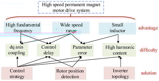 To sum up, the design of HS PMM drive systems is a strict process. Many factors need to be considered, such as harmonic suppression, rotor position detection, and the system control strategy, as shown in Figure 1. Therefore, the system has extremely high requirements and standards for these control objectives.