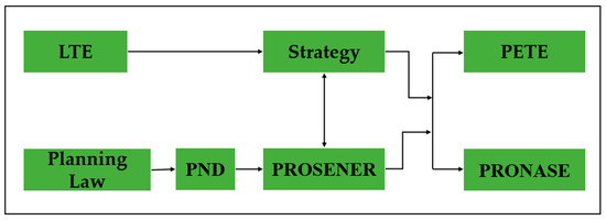 According to Article 21 of the LTE [26], the following OPDs are assumed as the guiding elements for TE under SEM’s structure (see Figure 2): (1) Transition Strategy to Promote the Use of Cleaner Technologies and Fuels (hereinafter referred as the Strategy) [27,28], (2) Special Energy Transition Program (PETE, for its Spanish acronym) [29], (3) National Program for Sustainable Energy Use (PRONASE, for its Spanish acronym) [30], and (4) Energy Sector Program (PROSENER, for its Spanish acronym) [31].