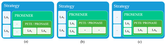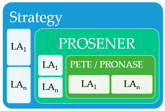 This work uses a branch of mathematical logic known as “set theory” to model the relationship of LAs with the specific preconditions of PETE and PRONASE and the preconditions of the Strategy and PROSENER. This approach has several advantages to ease systematization of this case study.