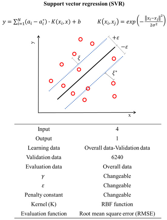 Structure and parameters for support vector regression (SVR) method. The asterisk (*) indicates the downward direction.