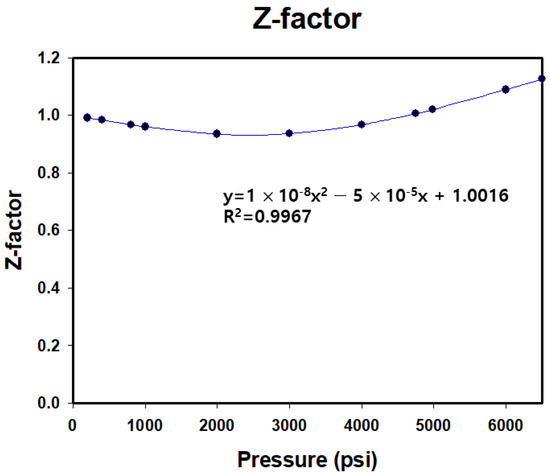 For the analysis of the production flowline, pressure drops due to friction, gravitational effects, and other factors must be considered. For tubing, if either the FBHP or the wellhead pressure (WHP) is fixed, the pressure drop of fluid flowing through the tubing can be calculated using various charts or correlations, allowing the pressure at the other end to be determined [23]. The relationship between these flow pressures and flow rates is known as the TPR or flowline performance curve (FPC). A typical relationship for vertical flowlines is shown in Equation (3). The method follows the iterative approach described by Katz et al. [26], in which the compressibility factor is determined at the average pressure to ensure accurate pressure drop estimates.