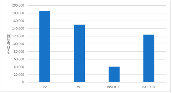 This constraint defines the minimum and maximum limits for the number of solar panels and wind turbines to minimize land costs. In this study, the maximum number of solar panels and wind turbines was set at 165 and 3, respectively, while the minimum was set at 50 and 0, respectively.