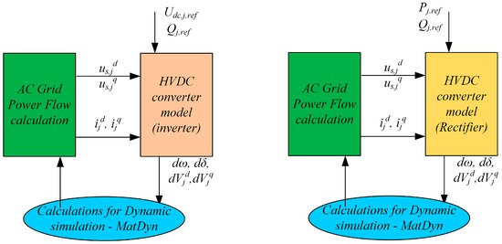 - Development and modification of analytical models of HVDC converters for simulation tests using MATPOWER [25] and MATDYN [26].