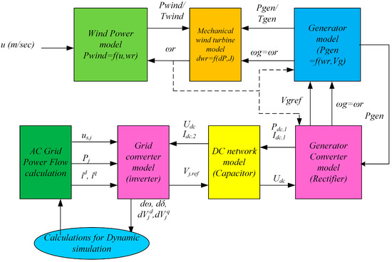 The detailed models of all wind turbine subsystems were developed, but they are not included in this paper for the sake of brevity and because they can be found widely in the literature. The work in [36] presents a relevant wind farm analytical model for short-circuit level calculations in large power systems. Also, in [37] an optimal control method for variable-speed wind turbines (VSWTs) in islanded mode of operation is presented. The MATDYN software was also extended and modified to include these models.