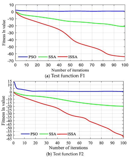 - SSA was optimized by using tent chaotic mapping, reverse learning strategy, and dynamic step adjustment strategy to improve algorithm convergence speed and optimization accuracy. In terms of optimization speed, after 28 iterations, the maximum value of PSO was −0.005. ISSA can effectively find the global maximum of 0 after 58 iterations;