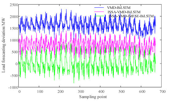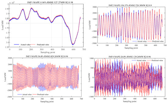 - The ISSA-VMD-WD decomposition method was used to decompose the complex nonlinear initial load sequence into several modal components. Compared with VMD, it has better robustness in sampling and noise and effectively avoids the phenomenon of mode mixing, which makes the error after modal reconstruction smaller and lays a good foundation for the later stage. The complexity of modal components was evaluated by IMFSE. A new sequence group was obtained after approximate superposition, the number of modes was reduced, and the prediction time was shortened.