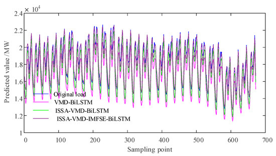 - A multi-feature load forecasting model was established on the basis of ISSA-VMD-WD-BiLSTM, which effectively improves the power load forecasting accuracy influenced by multiple factors.