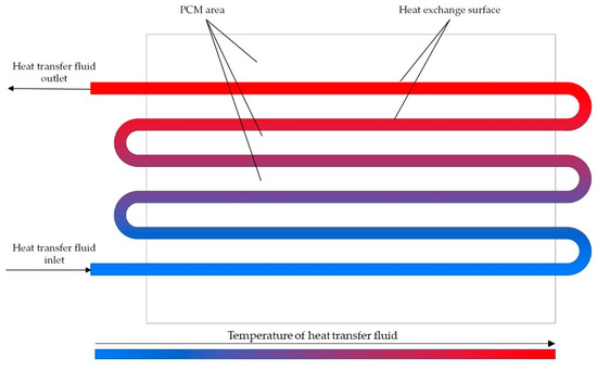 The heat exchange in a heat accumulator using PCMs is a non-stationary heat exchange [91]. Therefore, classical methods for calculating heat exchange surfaces do not apply to heat accumulators with PCMs. The operating time of a heat accumulator (during a charge/discharge cycle) depends on the amount of PCM and the heat exchange surface area. Therefore, it is necessary to determine the amount of PCM and heat exchange surface area for each specific use case. Designing a PCM-based accumulator for a specific application is not a standard task, and it may be beneficial to develop a custom design methodology for each case [92].