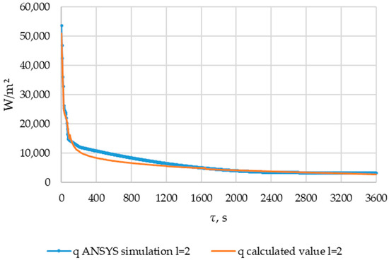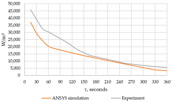 An experimental verification of heat transfer modeling was carried out to verify the adequacy of the modeling in ANSYS FLUENT. During the experiment, we studied the dynamics of the heat flux density during cooling and solidification of the PCM. We repeated the experimental conditions using the settings specified in Section 2.4 of ANSYS FLUENT. We compared the results of the simulation in ANSYF with the experimental data. The results of the experimental validation of the ANSYS FLUENT model are presented in Section 3.2.