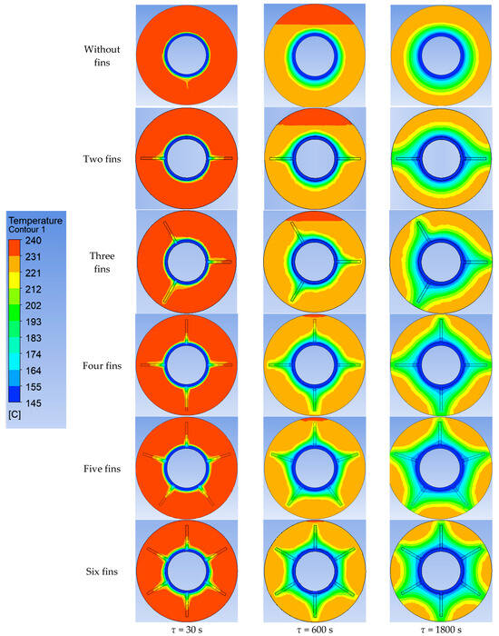 - Karimi, A.R.; Siavashi, M.; Keshtkaran, A.H.; Tousi, R. Impact of using different numbers of fins on heat transfer augmentation in a phase-change material helical coil latent energy storage system. Int. Commun. Heat Mass Transf. 2024, 156, 107608. [Google Scholar] [CrossRef]