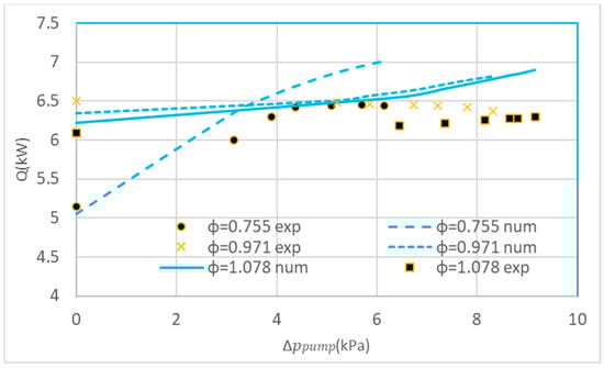 Comparison between numerical and experimental results of Q ().
