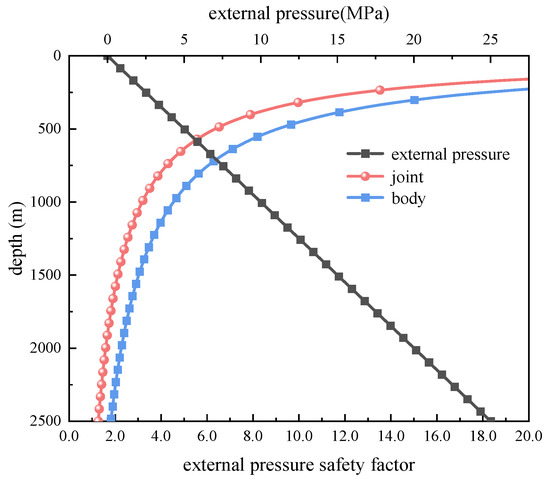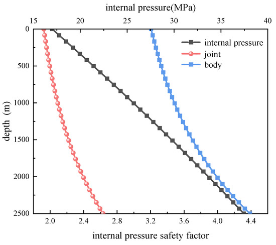When CO2 is injected at a relatively high rate, it is an important part of wellbore leakage risk assessment to assess whether the tubing string joint will be damaged [27]. Similar to the tubing string body, the tubing string joint also has risks of tensile failure, internal pressure failure, and external pressure failure.