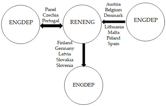 The study conducted by Emirmahmutoglu and Kose [67] examined the causal relationships among energy dependency, human capital, GDP per capita, CO2 emissions, and renewable energy use using the causality test. The analysis takes into account the presence of cross-sectional dependence (CD) and heterogeneity among the variables ENGDEP, HUMANCAP, GDP, COEMS, and RENENG. The results of the causality test are presented in Table 6, Table 7, Table 8 and Table 9. The panel-level causality analysis between ENGDEP and RENENG in Table 6 and Chart 2 reveals a bilateral causal relationship between the two variables. However, the country-level causality analysis shows bilateral causality in Czechia and Portugal; a unilateral causal relationship from ENGDEP to RENENG in Austria, Belgium, Denmark, Lithuania, Malta, Poland, and Spain; and a unilateral causal relationship from RENENG to ENGDEP in Finland, Germany, Latvia, Slovakia, and Slovenia.