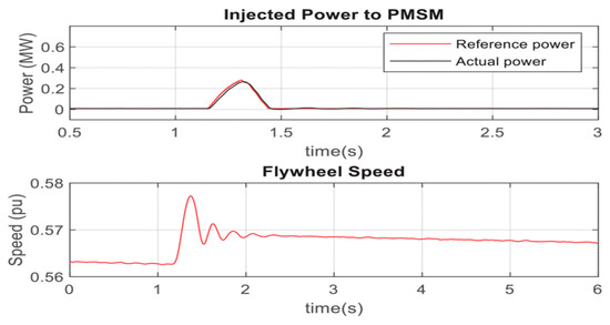 Power injected to PMSM and flywheel speed during L-L fault [66].