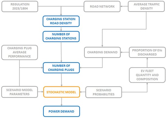 The following paragraphs explain the stochastic approach used for modeling the randomness of the system, intending to estimate the daily electric power demand and the total number of CPs. Finally, the design of the model scenarios analyzed in this study is presented.