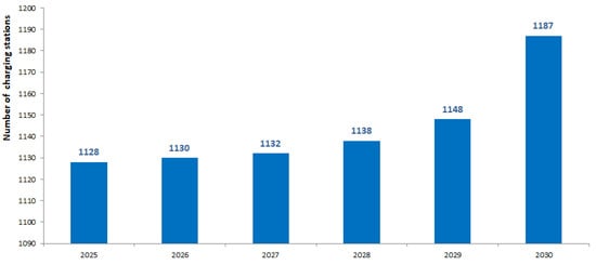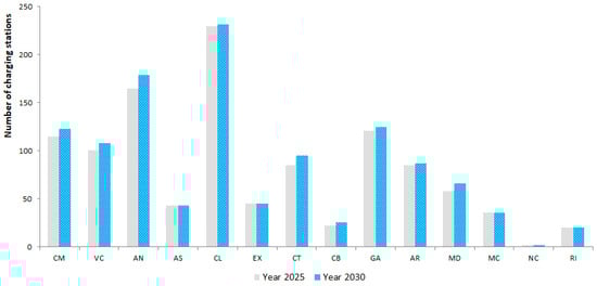 In consequence, the total number of charging stations () calculated in Equation (10) is the sum of the charging stations (CSr) per road r in the SRN, considering that the total number of roads in the SRN (NR) is 388 [47].