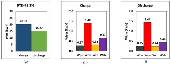 The results of Figure 3 underline that RFBs are energy systems with energy loss; for the sake of clearness, Figure 4 reports the Sankey diagram of energy flow and loss terms of the RFB system reported in Figure 3d considering 100 kWh as the input energy.