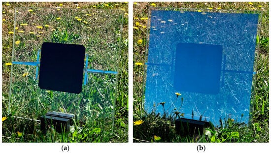 PV modules (300 × 300 mm2) with the titanium coating sputtered with the power of (a) 1000 W and (b) 2500 W.