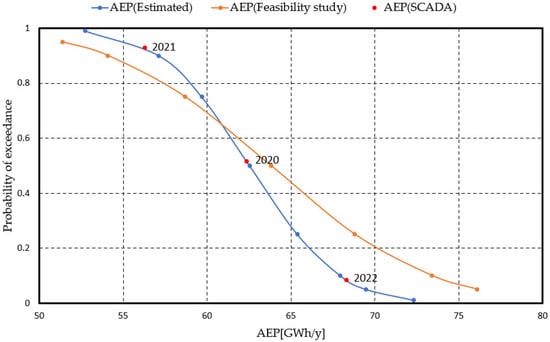 In particular, in the case of 2022, the AEP from the SCADA data was higher than the AEP at P30 (67.719 GWh/y) derived from the feasibility study, and it was confirmed that there is a possibility of reaching P30.