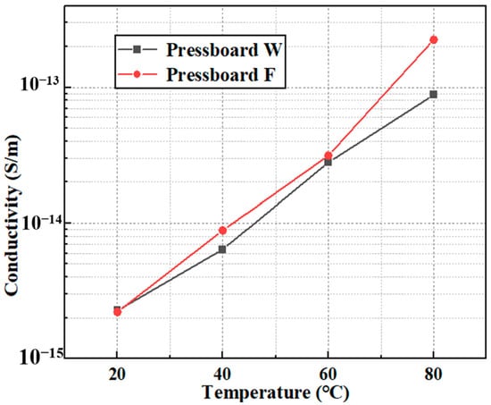 Figure 10. Comparison of conductivity of oil-impregnated pressboard from different manufacturers.