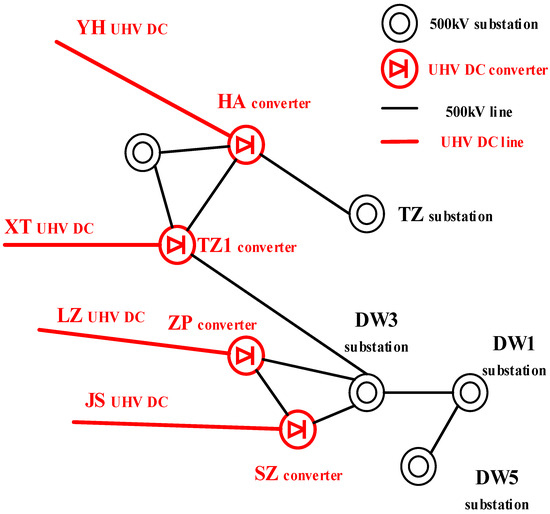 UHV AC/DC hybrid grid topology considering dynamic loads.