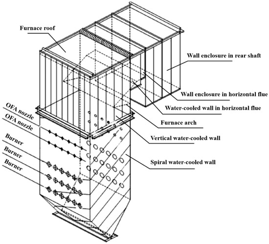 - Wang, C.; Chen, X.; Liu, B.; Liu, K.; Han, Y.; Wang, L.; Che, D. Dynamic analysis for ultra-supercritical boiler water wall considering uneven heat flux distribution and combustion instability. Int. J. Heat Mass Transf. 2025, 236, 126269. [Google Scholar] [CrossRef]